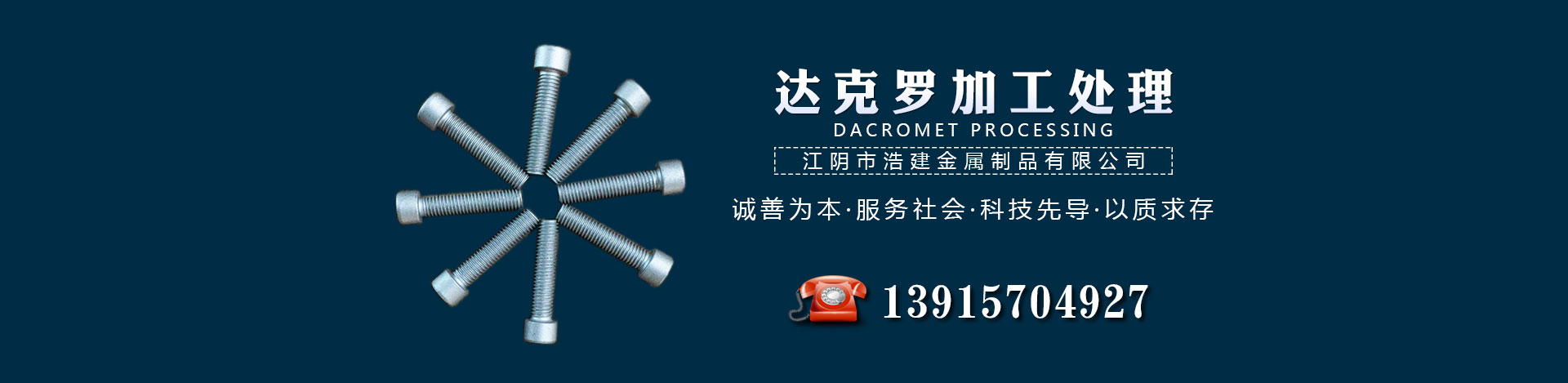 江陰市浩建金屬制品有限公司創建于2017年9月,主要業務:金屬表面處理,達克羅加工處理等。公司是專業從事金屬表面處理的高科技企業,致力于環保的金屬表面處理。公司還配備了多種 的計量、理化檢測儀器和設備,以保證產品的高質量。起初僅用于國防...詳情》